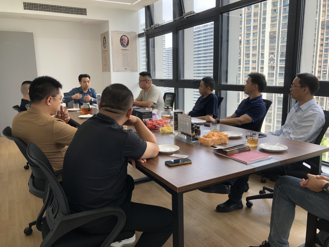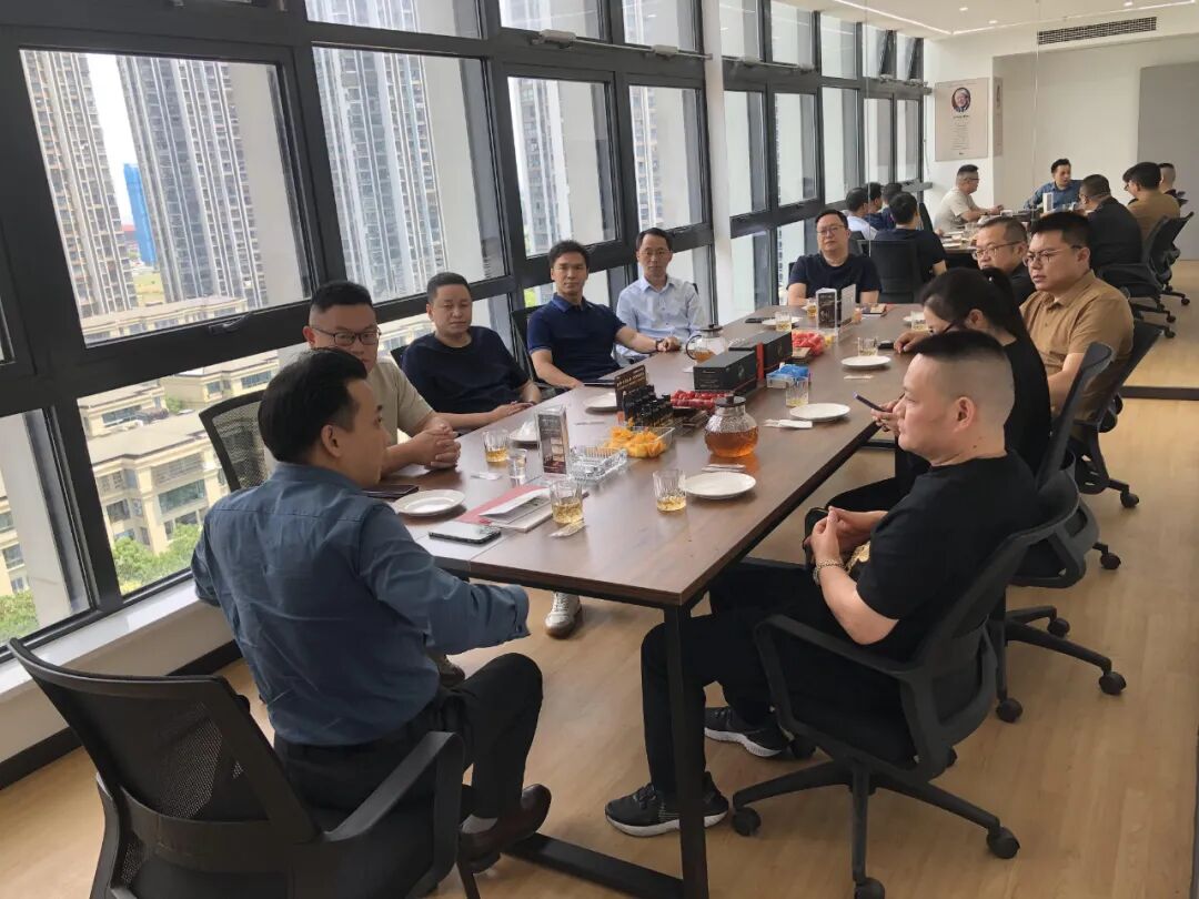参观后,省广协常州代表处一行人与拜森生物集团创始人兼董事长吴奇能博士、集团董事毕建华、首席运营官兼常州拜森总经理林新斌以及合庆火龙果股份副总经理吴瑞兵,展开了深入的交流。